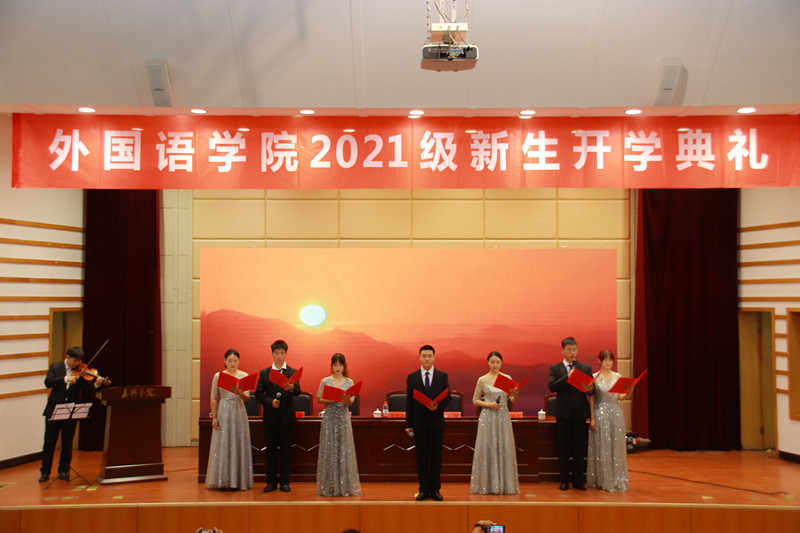在庄严的国歌声中,开学典礼正式拉开了序幕。典礼上,公司党政领导为2021级新生班主任颁发聘任证书。校第六届“我心目中的好老师”荣誉获得者、日语系系主任刘韵超老师作为教师代表发言,希望同学们成为有目标、有责任感、善学习的人,始终保持良好的学习状态,以更加饱满的热情学习专业知识,同时通过社会实践充实老员工活,成就更好的自己。