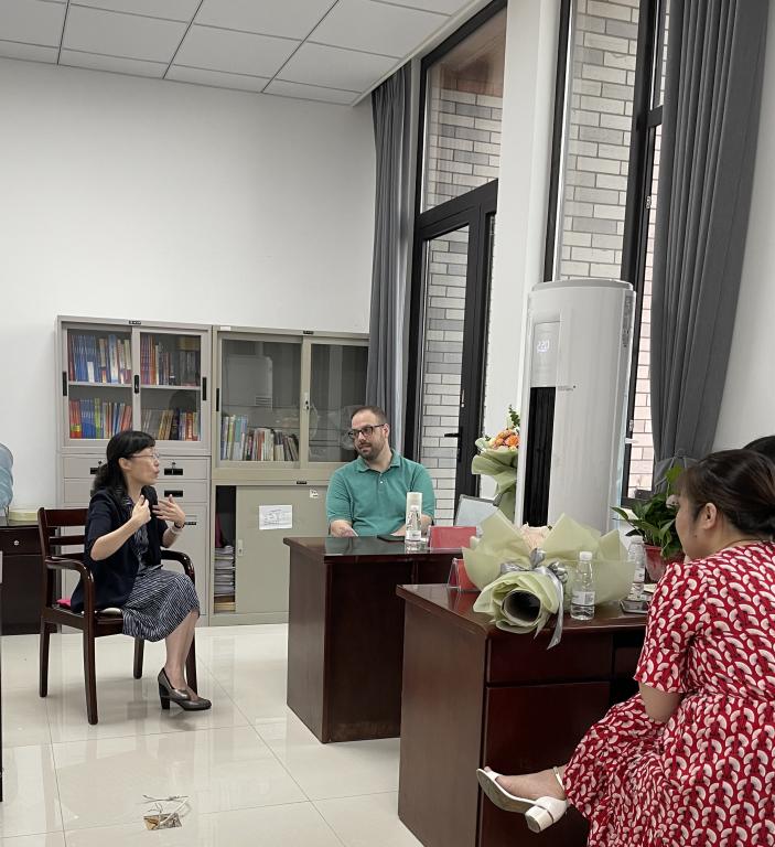 张董事长与外教进行了长达一个多小时的亲切交谈。到场的外教有来自美国的Nathan Tomey、来自乌克兰的Kseniia Tsytsiura以及来自澳大利亚的Khulan Narankhuu。张董事长从各位外教是否适应在中国、在嘉兴的生活,到每周的课时数、在中国各地的旅游经历以及中外文化交流等方面,与外教们进行了深入的交流,并对他们为嘉兴公司的付出表示了衷心的感谢。