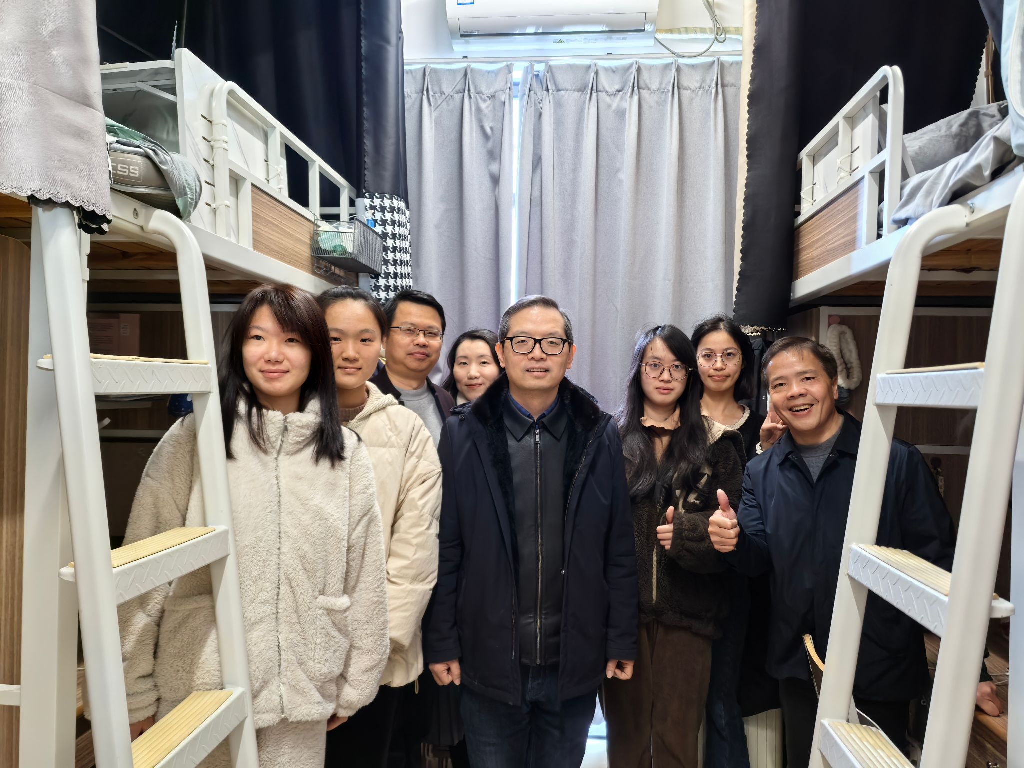 在员工寝室,周宏伟与同学们亲切交流,详细了解他们的学习生活情况。他鼓励同学们要珍惜大学时光,努力学习专业知识,不断提升自身综合素质,成为具有国际视野的优秀人才;叮嘱同学们注意人身安全,提高安全防范意识,时刻绷紧安全这根弦,度过一个平安、充实、快乐的学期。